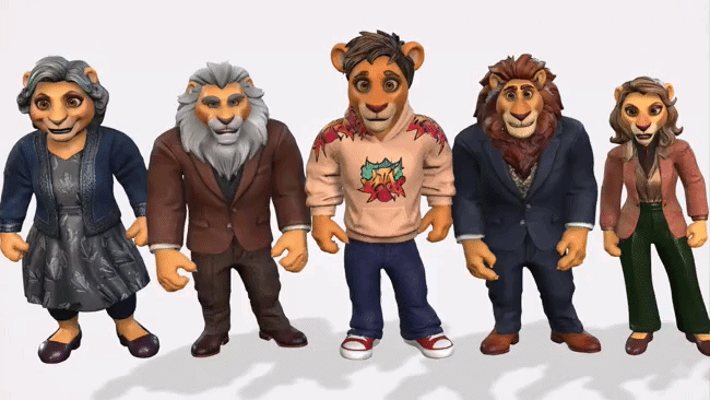 The Lions Family – Animal Toons Series | Complete Pack (6 Characters) Introducing The Lions Family, the first release in the Animal Toons series — a premium collection of 6 fully stylized, production-ready lion characters designed for storytelling, animation, and real-time projects. This is not just a character pack — it’s a complete family with personality, depth, and cinematic presence. What’s Included This pack features six unique characters across three generations: Lion Father – strong, confident, and reliable Lion Mother – calm, elegant, and nurturing Lion Grandfather – wise, charismatic, and full of presence Lion Grandmother – warm, caring, and expressive Lion Girl – bold, energetic, and independent Lion Boy – playful, curious, and full of life Each character is designed with a distinct personality, making them perfect for storytelling and character-driven projects.